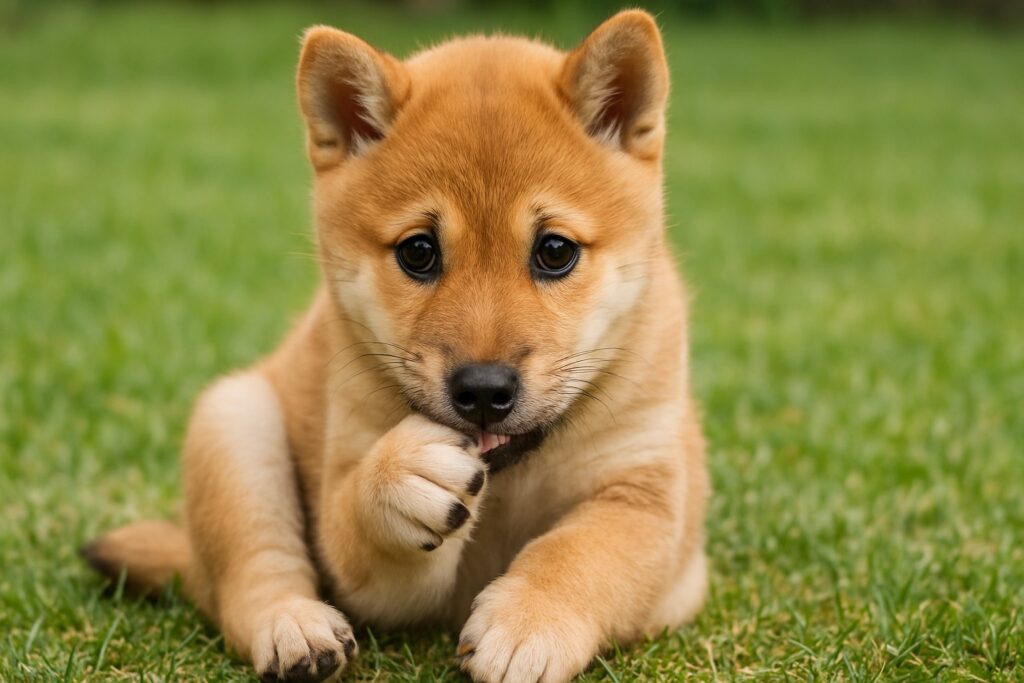 生後4ヶ月から半年頃の子犬が爪を噛んでいる場合、歯の生え変わりによる口内のかゆみや違和感が原因かもしれません。